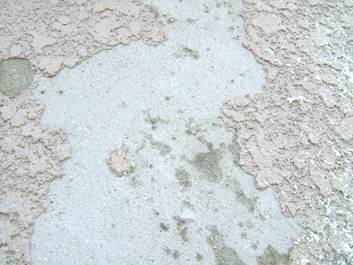 塗装から7年後の結果防水性の塗料を塗った為に、室内からの水蒸気がモルタルと塗料の間にたまり、逃げ場がなくなって剥離した。 現在では、水蒸気を外に吐き出す塗料が多く使われていますので、このような現象は少なくなっています。 |