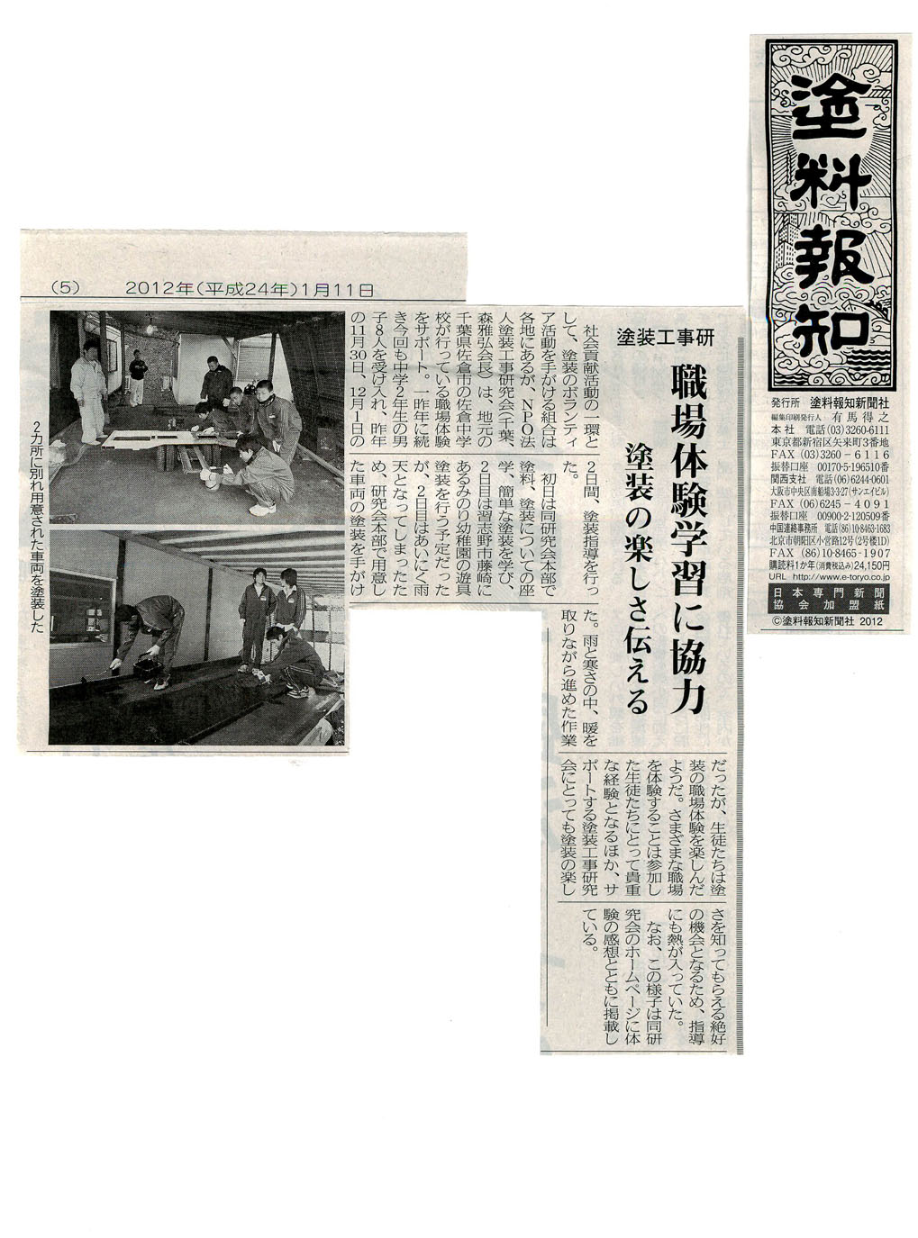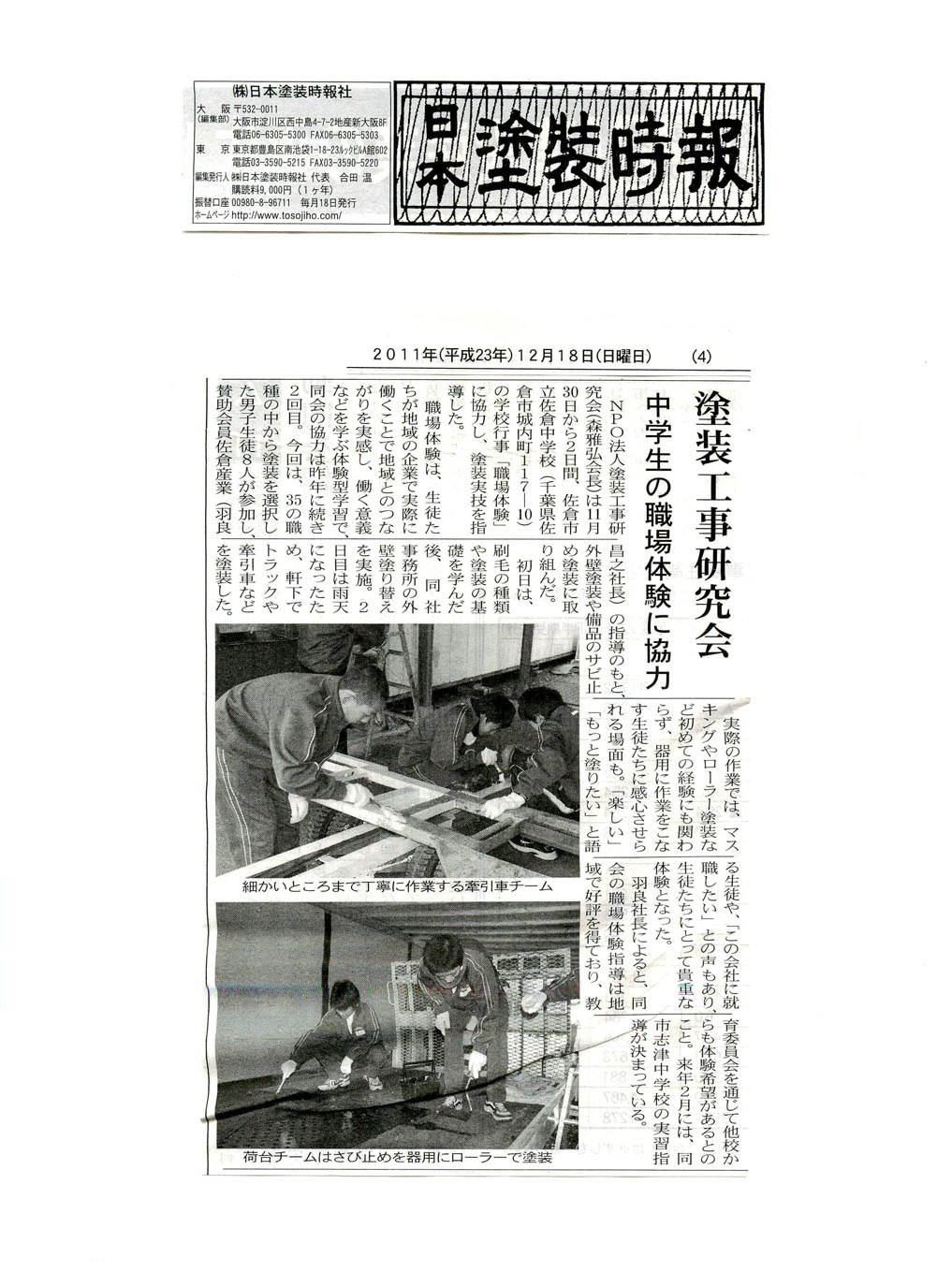 塗装の職場体験に笑顔 地域の小中学生が9名が参加