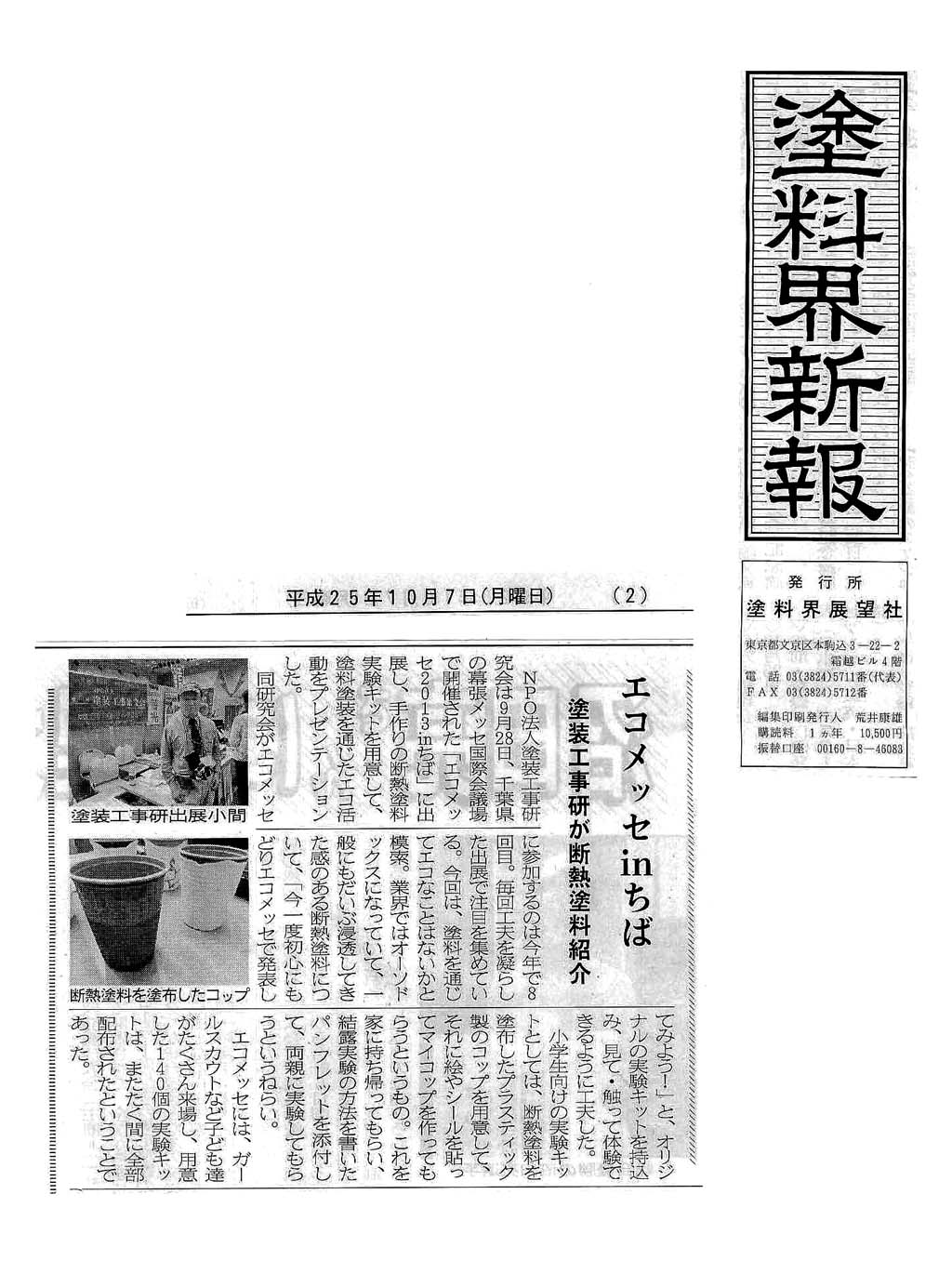 『エコメッセ2013inちば』に遮熱・断熱塗料を展示